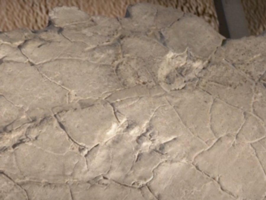 Visione della pista fossile dell’Etosauro conservata nel Museo del Territorio di Dogna>
