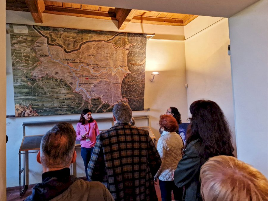 Trasferimento al Castello del Verginese, presentazione del programma e consegna dei materiali. Visita guidata al Castello con analisi agli aspetti legati al rinascimento ferrarese, analisi dell’evoluzione geomorfologica del territorio e dell’ambiente in epoca Estense attraverso le carte storiche, studio dell’architettura e della funzione delle diverse delizie, approfondimento sugli artisti della corte estense e del ruolo culturale della città nel Rinascimento. Approfondimento sulla storia di Lucrezia Borgia, Laura Dianti e Alfonso I d’Este.
